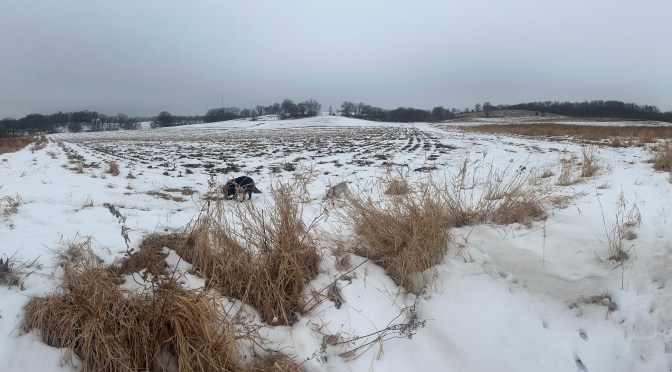 The chickens were enjoying the warmer weather and the rain melted more snow and they were all out roaming again. The pheasants have come around sharing in the chickens’ corn. I counted 14 one day. They’re skittish. Soon as we come out the door they fly away. And now I’m getting squirrels in the feedroom. They don’t want corn off the ground evidently, they want it from the bin. They’ve chewed ANOTHER hole in the bottom of the door.