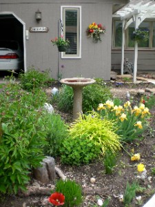 Krista, there are some Solomon’s Seal plants in the garden in the picture which you can’t see. The grape vines on the trellis and the side of the garage were partly damaged by winter kill, but I think they will recover. A morning dove is sitting on eggs in a hidden nest on the end of the garage in the grape vines.