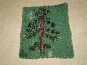 I just want to clarify that I copied the bead embroidered tree from a design by Jo Wood. I love her stuff. You can check out examples of her art at jowoodbeads.com. “Chicago Bay” is my favorite piece. If you ever go to Hovland, I believe it’s displayed in the post office. I also like “My Garden.”