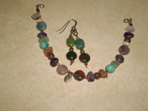 I also get carried away with crafts like embroidery and/or bead embroidery. I took a North House Folk School class from Jo Wood and learned about how she paints with beads. I’ve done a couple of pieces that way and am ready to move on to something a little bigger. The embroidery is on a surplus French army backpack. I did the same design on a surplus French army coat too. The bracelet and earrings are my own design.
