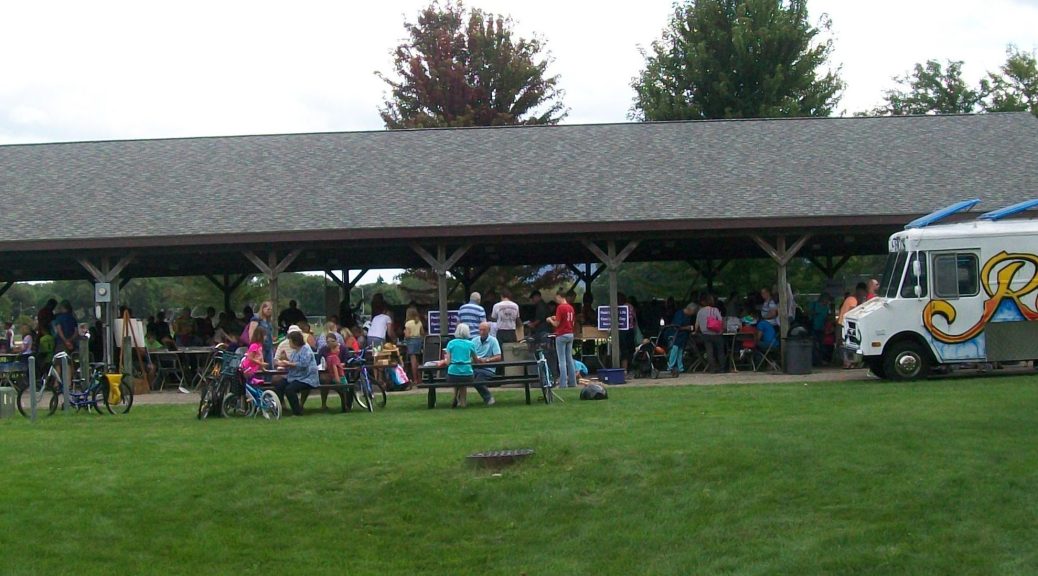 On a perfect Saturday (one of the 10 perfect days this year) during Labor Day Weekend, Husband and I were introduced to Family Art Day here in Winona. Held from 10:00 – 2:00 on Saturday at a covered pavilion on the banks of Lake Winona, this annual event features a couple of dozen local artists, each with a table (or two) holding the supplies required to do/make their craft. There was everything from painting murals to… well, here is the list of options: