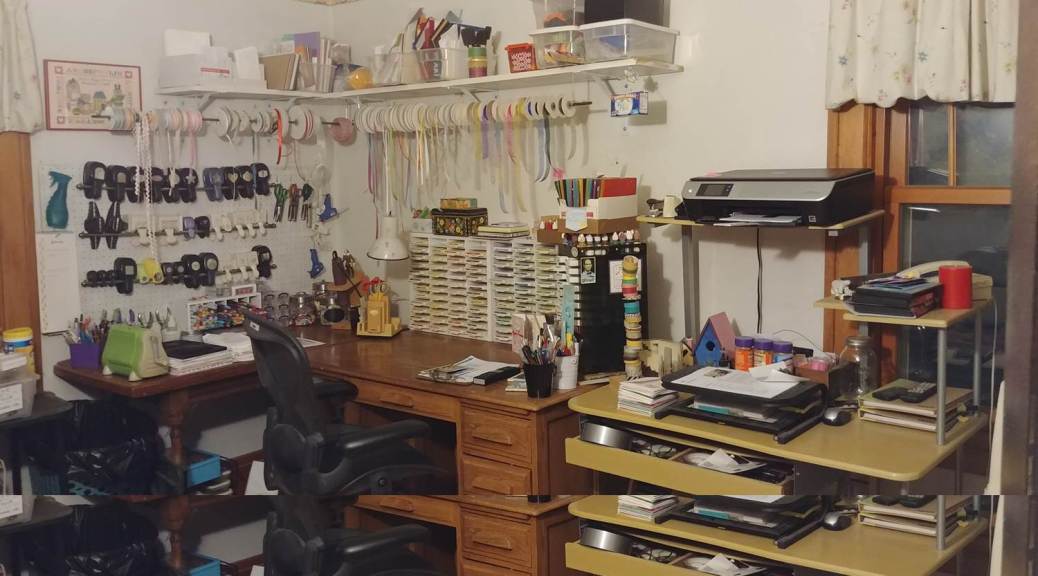 If you’ve seen photos of my studio before, it probably doesn’t look any different to you but it feels different to me – all put back together as well as nice and clean now. And I doubt anything will bring those shelves down again – fingers crossed!