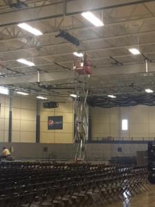 I was driving around in a genie lift, 40’ in the air and hoping 1) I wasn’t distracting them, and 2) they wouldn’t hit me with a basketball. OK, there was a screen separating their area from the area I was working in but still. Wouldn’t it be awesome to hit the guy in the genie?