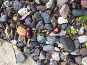 They’re just so appealing with their large size and smooth shell and the nice brown color. And they’re fairly easy to get out of the husk. Walnuts are messy and stain your fingers and they’re just dark brown and yucky. Acorns are kinda cool, but they’re small and sometimes hard to get out of the husk. But horse chestnuts. I get warm fuzzies just thinking about them.