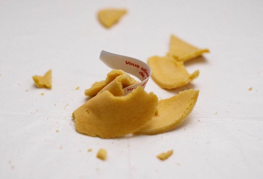 I’d like a fortune cookie to reassure me that “Everything is going to be OK.” But the fortune cookies I get are usually stranger and more mundane. I once got a cookie that advised me, “Don’t spread your cold. Cover your mouth when you cough.” That was odd enough but another time my fortune was, “You will find one missing sock.” The cookie didn’t even say whether it would be one of my socks.