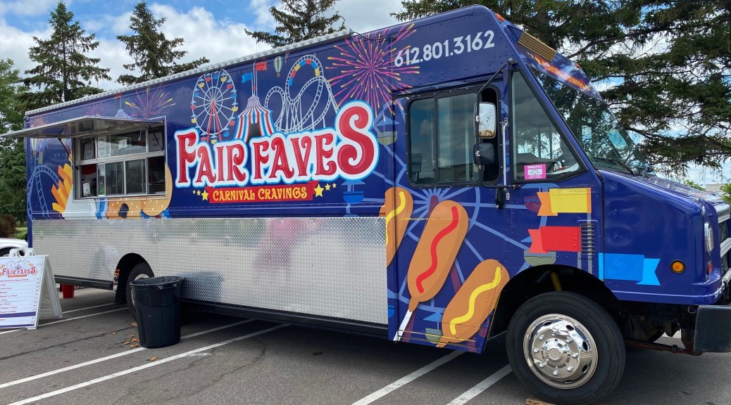 Well, we did it. We found a fair food truck that had three of our favorite things and that wasn’t too far! It was up in the Costco parking lot in north Minneapolis, so if you don’t count my having to backtrack because it turns out the 46th street ramp onto 35W is closed, it only took about 15 minutes to get up there.