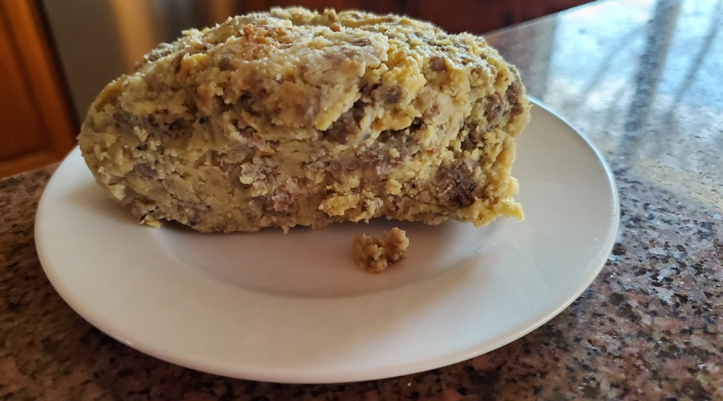 Last weekend, Husband made Scrapple, a Pennsylvania favorite, and his ultimate treat, since it combines cornmeal mush with pork. He used Julia Child’s recipe ( Who would have imagined she had a Scrapple recipe??) It is sort of yellowish brown. You can see it in the header photo. After it was baked and cooled, he sprinkled slices of it with cornmeal, fried them, and ate them with blueberry syrup. I just stay out of the kitchen when he gets it out. It is too weird for me.