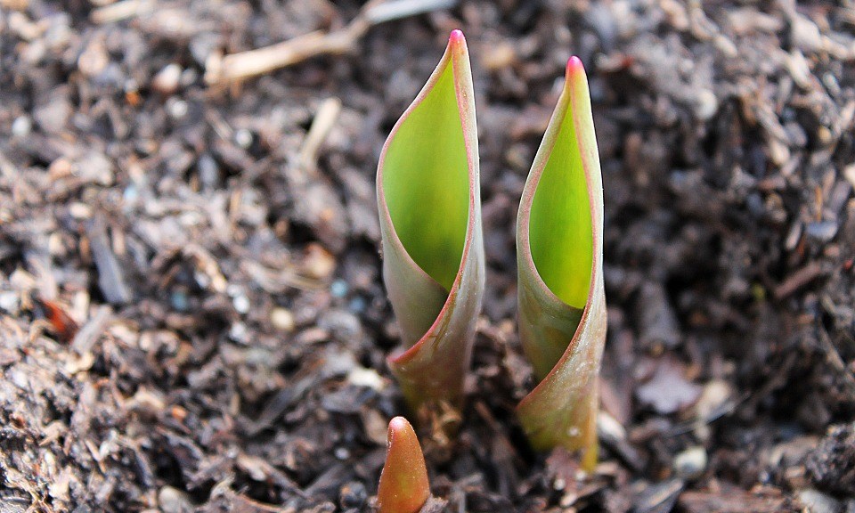 Yesterday Guinevere and I turned right at the bottom of the driveway instead of our normal “to the left” on our walk. I got a really good look at my boulevard and was so surprised to see not just the daffodils starting to sprout up, but also the tulips, lilies and even a teen tiny peony tip. And, of course, even a few creeping charlies. Even though a few baboons have already mentioned that they’ve seen things popping up, it still surprised me to see so much this early.