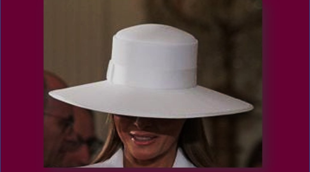 It just struck me, maybe because of that expanse of white hat, that melania means dark or black in Greek. Strange thing to name a baby, if you think about it.