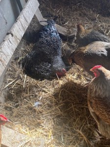 The chicken’s feet are muddy which means the eggs are muddy (unless I get them before they step on them to lay another). They are enjoying the warmer weather and taking dust baths in the pen.