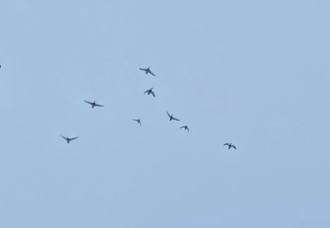 I watched a flock of 12 ducks fly figure 8’s over the yard one day. Four finally landed in the pond. Not sure where the rest went.