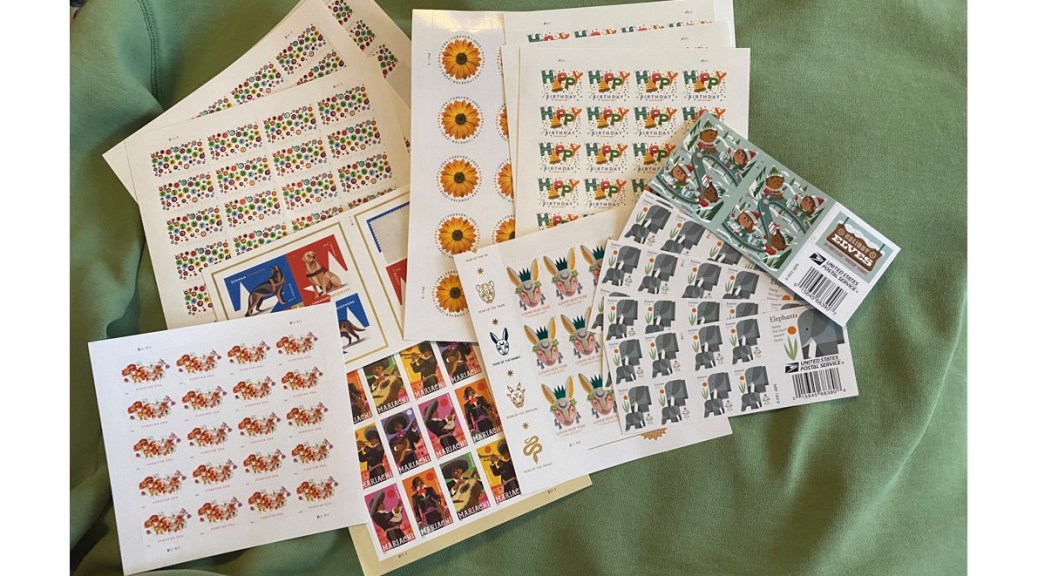 So when I noticed a news story about postage going up (it increased yesterday), I thought maybe stamps was one thing I would load up on. Apparently I’m not the only one to think this…. a couple of the stamps that I like were out of stock at my local post office. So I chose some others and then came home and ordered a bunch more online. I figure I won’t have to buy stamps until August!