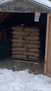 It’s so easy these days- they put it in the truck with a folk lift, and I use the tractor and forks to take it off the truck and put it in the shed. ‘Work smarter not harder’ they say. But it’s hard to build muscles that way, the weaklings.