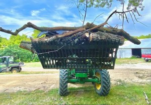 I spent a few hours on Monday hiding in the AC of the tractor and using the grapple to pick up the tree trimmings and some other stuff. It was pretty fun.