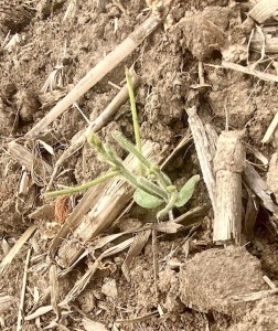 We’re at 1375 growing degree units, about 265 GDU above normal. On Monday night, July 3, we got 3/4 of an inch of rain. It was a nice gentle rain. It soaked in fast and Tuesday afternoon, when Kelly and I took our gator date drive around the fields, the surface was already dry. It hasn’t really improved anything yet; grass is still pretty brown, the corn is uneven, (although the leaves have opened up, simply because it’s not so hot), but the beans haven’t filled in yet nor grown much. And we’re gonna need more rain than that to keep it going. But it sure was helpful and by Friday there was some more seeds almost sprouting.