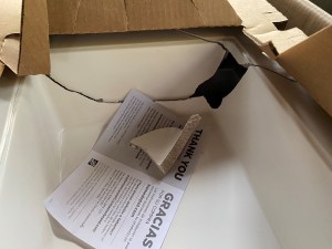 Since the return process didn’t go smoothly, I ordered the second one sent to the store. After another set of Mercury-long days, I got multiple messages via text and email saying different things about where the vanity actually was. Called Home Depot and got told the vanity was at the store. I called the store and talked somebody into checking that it was actually there. Called contractor (I spent a lot of time on the phone for this project) and told him he could pick up vanity in the morning. Then lo and behold, overnight I got an email saying vanity had arrived at the store broken. Apparently when the guy at the store told me it was there, it hadn’t been taken off the pallet yet so they didn’t realize it was broken. Sigh. I made kind of a large stink at that point. Not sure if it helped or not but the third vanity arrived undamaged. And even though the store said they had checked it, my contractor made them open it up so HE could check.