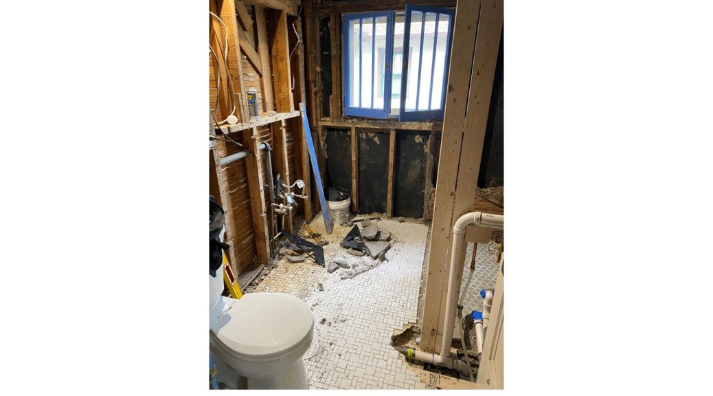 When the contractor was finalizing his proposal, I asked him for a guesstimate on how long it would take. He said four weeks. I assumed he was padding that and then padded it again myself so I wouldn’t be upset if the bathroom wasn’t up and running again in a month. Good thing.