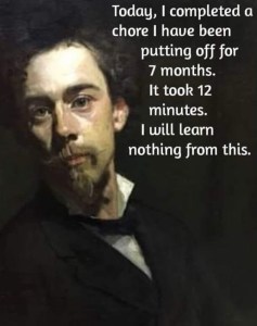 I can relate to the feeling of joy when you complete a task that has been there, waiting, niggling in the back of your mind. It feels like such a weight lifted when you just do it. I need to deal with all the crafts, notebooks, and beadwork stuff on my dining room table. I’m sure I’ll feel that way when I finally do. It’s all been sitting there way too long. I saw that meme too. I figured out all the Medicare stuff and finished my taxes early this year. That felt great. The Medicare stuff really felt like a chore to me.