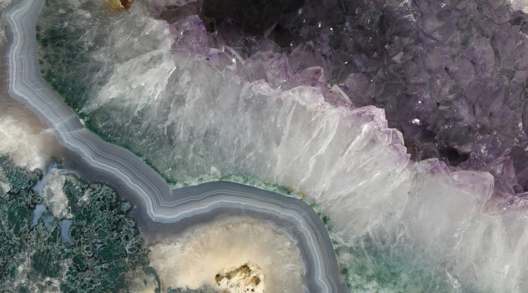 Grandson wants to identify and collect every interesting rock he sees. Our son got him some geodes in a rock shop that they had fun opening with a hammer to see the crystals within. Earlier this week I sent Grandson a set of very heavy and colorful polished quartz bookends we had in the basement. It is a win-win for all of us since they are just what Grandson is collecting these days and now we don’t have to find somewhere for them when we move. They also serve a double purpose as bookends.