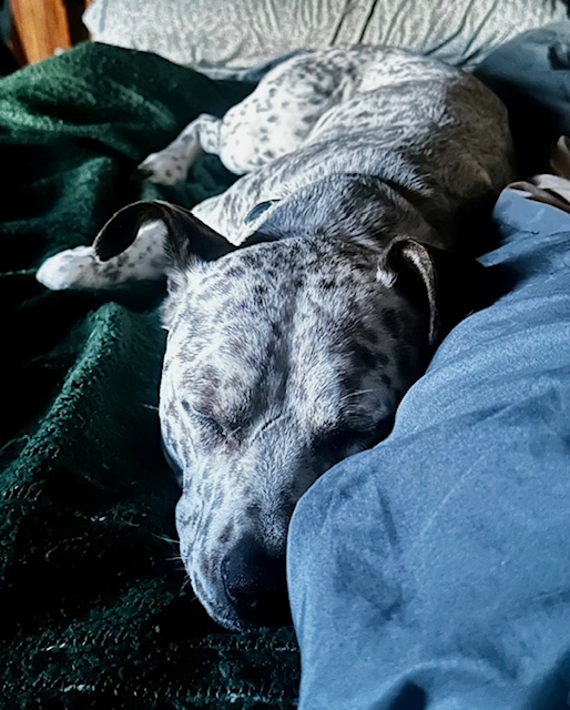 Our dog Luna. Boy she loves life. She’s an early bird, and really does not want to be touched after about 11 PM. That’s her sleep time.