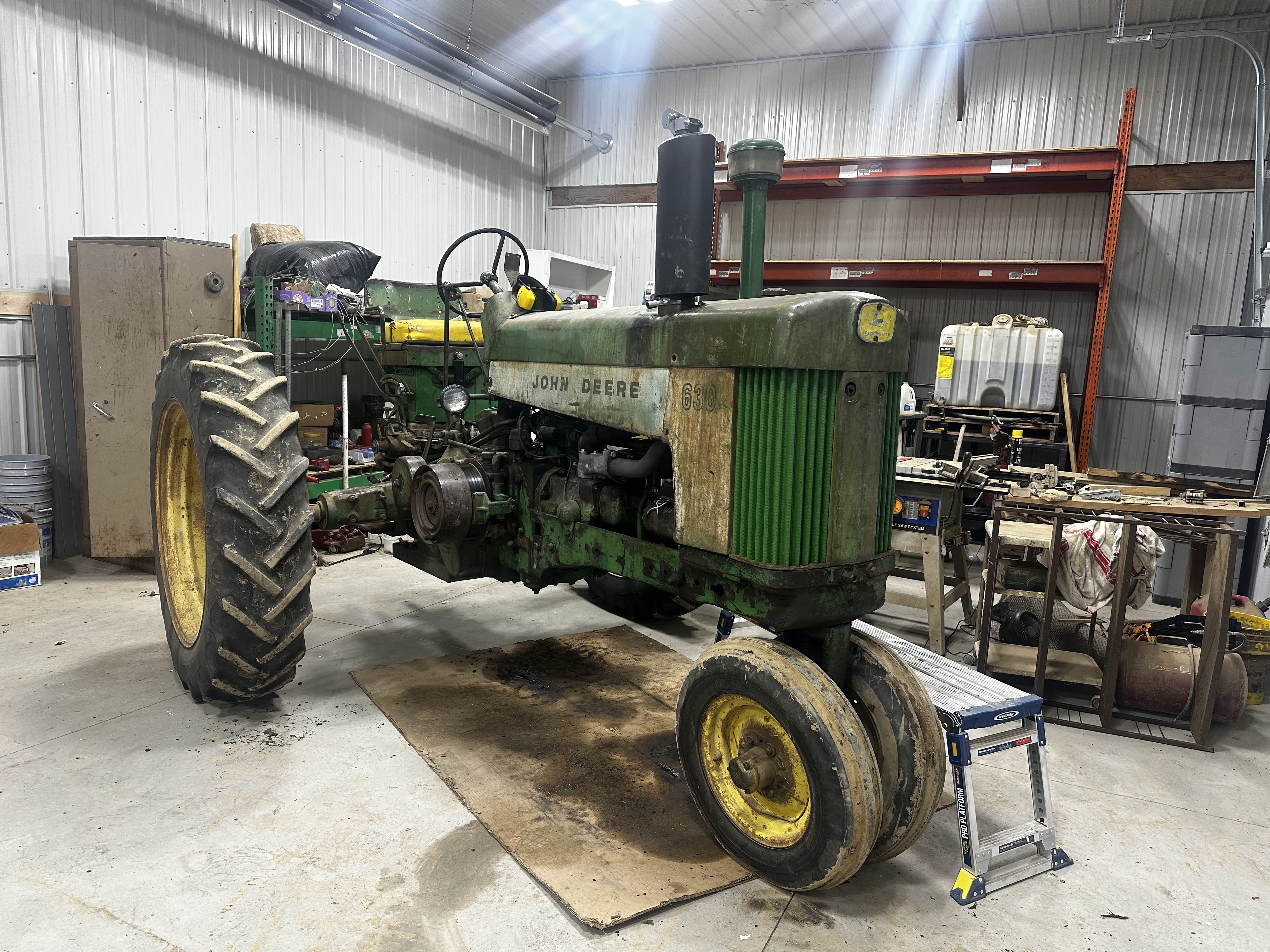 Needs an oil change yet and it will be ready for next summer’s work and projects. Next summer’s project I think will be rebuilding the belt pulley assembly. Clyde probably knows what a belt pulley is. You’ve seen pictures of back in earlier days, a long canvas belt ran between the tractor and an implement to provide power before the advent of power-take-off on the rear of a machine. That’s the belt pulley.