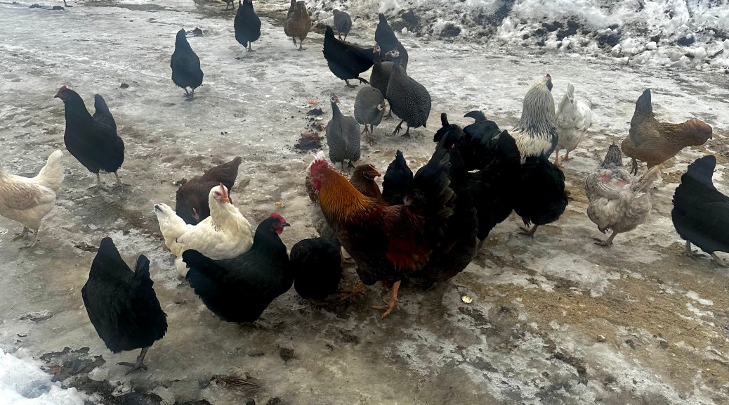 We got a little bit of rain last week so the driveway and yard, being a little bit snow-covered, got pretty slippery. I went out with the tractor to try and rough up the ice and scrape some of it off. Using both the front loader and the rear blade I got 90% of it. At least we’re not sliding sideways across the yard.