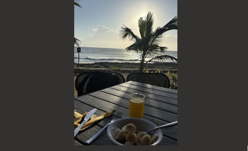 This morning, I got up to the above photo texted to me from YA, who is on a work program right now. Up until that moment, I had thought we were having a really warm couple of days. Everything is relative, I guess. The caption under her photo was “Breakfast on my balcony.”