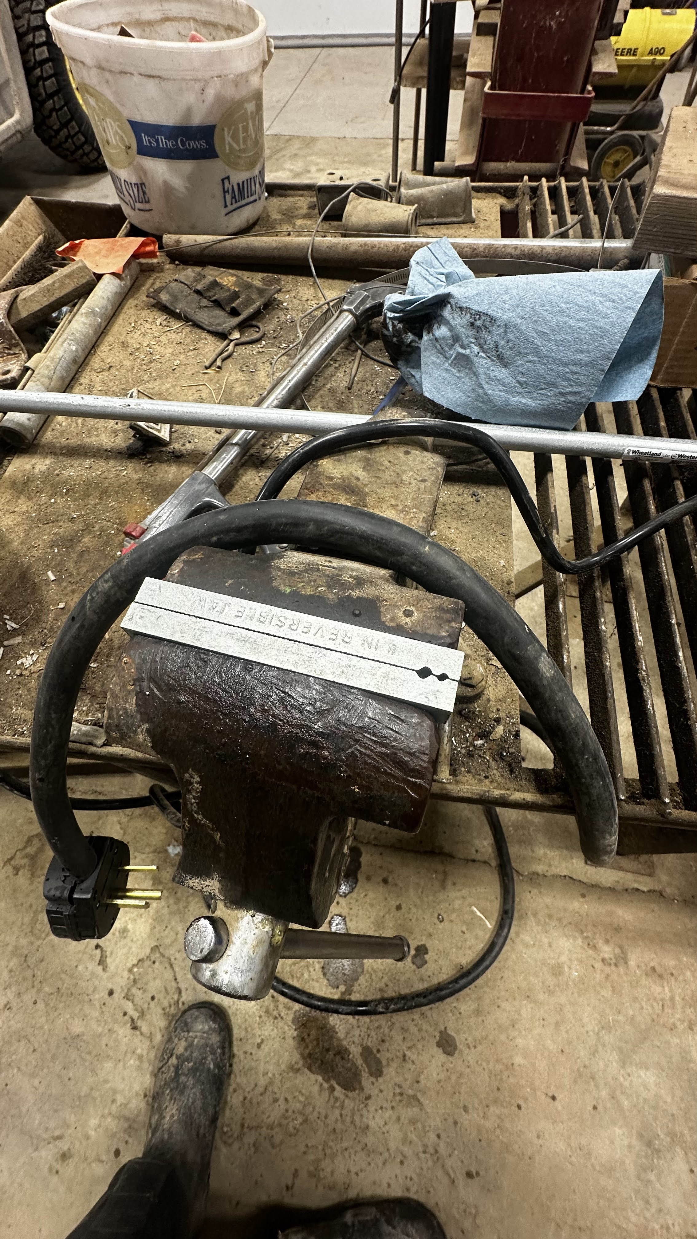 Out in the shop, I got the new ventilation fan wired up last weekend, and I replaced the jaws on the vice on the welding table. Years of beating on things had broken off the ends.