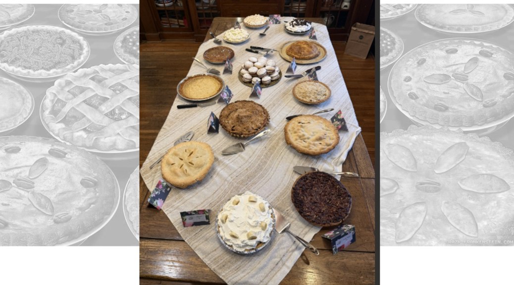 I was a bit worried about whether I could be ready by 5. On Thursday and Friday I was… well a little fuzzy. Just not firing on all thrusters. Around noon on Friday, I had some pie shells par-baking; as I waited, I took a quick break on the sofa. When the timer went off, I headed to the kitchen, faced the oven, turned off the timer, put on the oven mitts and then promptly turned right around and opened the dishwasher. Just a smidge loopy I’d say.