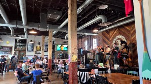 When I got there around 3:00, the place was packed – standing room only. I got a lucky seat when a person sitting beside my friend Cherie left for the other room, where the Silent Auction was taking place. I eventually stood in a long line for a Cold Milk Stout (really a delicious thing – look it up). It had been a year or more since I’d been to Two Fathoms – it hosts weekly Beer Bingo, weekly Trivia Night, live music on weekends, and a monthly Karaoke, et al. Best, though, are the monthly Jazz Jams on a Sunday afternoon – with the local H3O Jazz Trio and an open mic; each month a portion of the proceeds go to a different local cause. Here’s a photo to give you the “flavor” of the place…