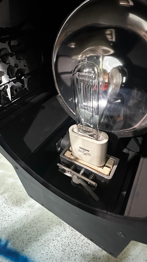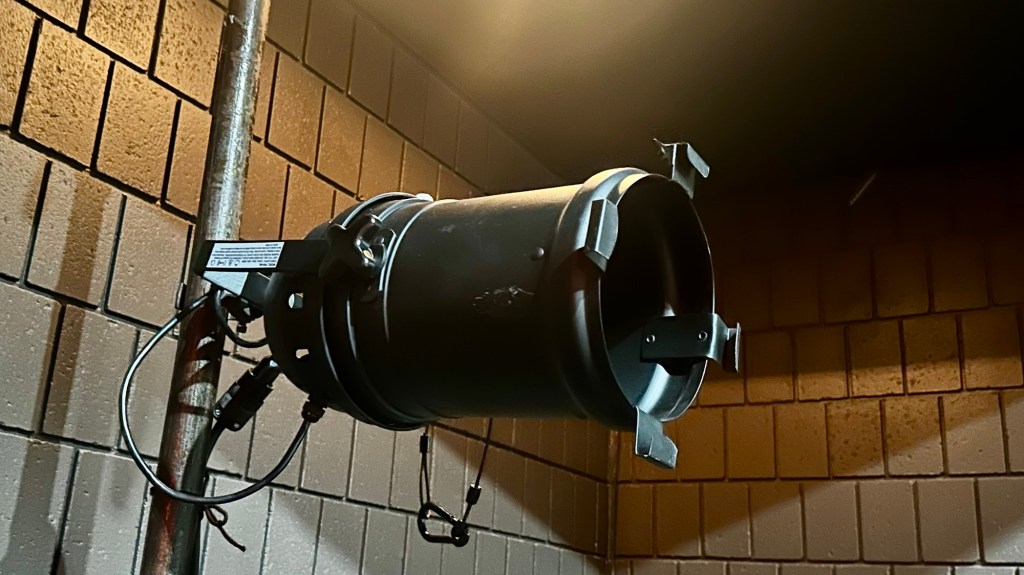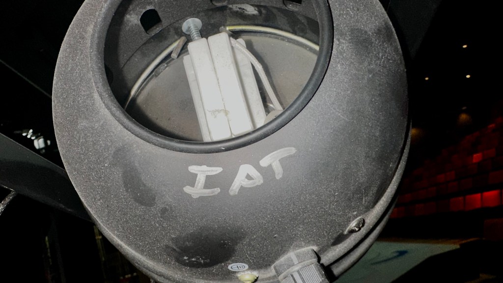 I’m using two lights called ‘Parcan’s as side light. They take a lamp that looks like an old car headlight. A sealed beam round light. 500 watts. It’s old technology from the hot and heavy days of Rock and Roll before the days of moving color changing lights. One light, one color. They make an oval beam of light, and you reach in the back and spin the bulb to get the oval the way you want it. It used to be a whole big thing. I felt a little nostalgic when I reached in the back and spun that lamp. My gosh I’m old.