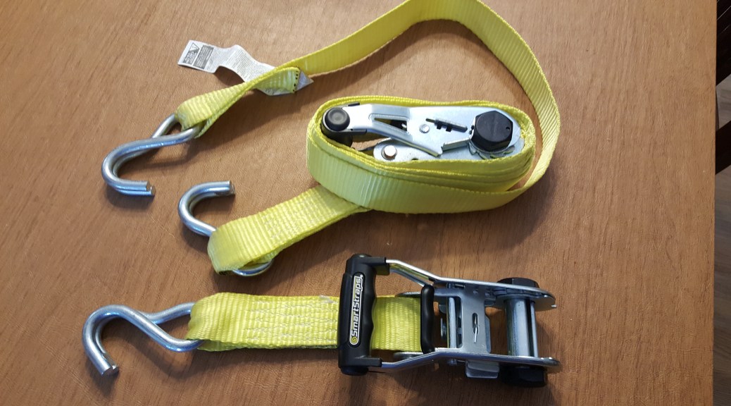 The straps and ratchets are stored in a compartment of my truck. I am too embarrassed to show my incompetence by asking a casual friend or neighbor for help. I vowed never to use an unspooled ratchet and strap again– if I can avoid it.