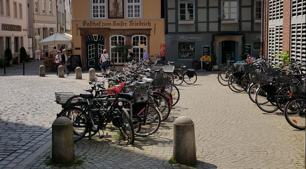 Neddenaverbergen is a small farming community of around 700 people. It is quiet and very tidy. There are lots of flower and vegetable gardens. Oma was wrong. There are several streets in the village. All the farmers live in the village. The farmland surrounds the village on all sides. Almost all the farm buildings are in the village as well, except for the modern buildings that house large machinery or livestock. The houses are old, and are built in the style in which the barn was attached to the house. All the houses and outbuildings are very close together, so that one neighbor’s house/barn is right next to another neighbor’s house/barn. The houses are half-timbered and made of brick. There are far fewer farmers now, and many of the residents commute to jobs in Bremen or Verden.