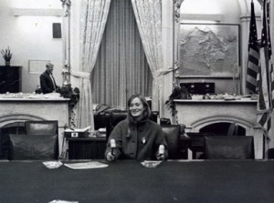 “On Sunday, Roland’s aunt who works for the Senate’s Committee on Foreign Relations took us on a fun insider’s tour of the capital and offices and treated me to a middleclass tourist souvenir treat – including a photograph* of me in Fulbright’s chair in the Senate committee room with gavels in hand. We also got to read some of Fulbright’s mail (over 2-1 against/some for Nixon) What fun!”