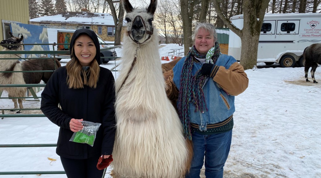 YA came to me three weeks ago after finding a local llama “petting farm” in Waconia (she found it on TikTok). For a fee (relatively small in my estimation), you could pet llamas, feed llamas and even take a trail walk with a llama. With nothing else on our horizon, we figured why not. It’s apparently quite popular so it took a couple of weeks between contacting them and getting a reservation. We headed out on Wednesday, the farm being about 30 minutes from our house.