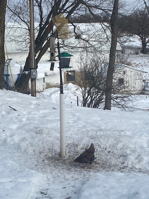 We are all glad the weather has finally warmed up. The ducks finally got out of the pond and actually came back up in the yard. Chickens, squirrels, pheasants, and lots of birds are out and about and enjoying it. The show has melted off the deck so I can go out there and walk around a bit.
