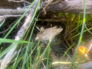 A few years ago, we started a pile of sticks on fire and there was a good blaze going before a chicken came running out from under it. So, we look before we light it now. The duck only has three eggs… not sure they’re even fertilized. But the fire is still on hold.
