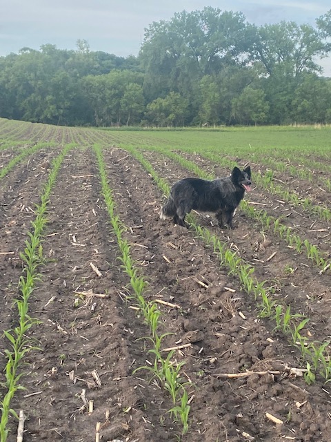 The co-op has been out and they have sprayed the oats with a fungicide to prevent rust and sprayed the corn for weeds. It’s a little frustrating as I work so hard to follow the contours of the hill to prevent water erosion, and the spray rig will run parallel to the waterways, basically up and downhill, because they need a border for the spray pattern. And then we got 2” of rain, and the water runs down their tire tracks. It’s just bad timing. A couple more weeks the corn would be big and well-established and enough roots to hold the soil. Or if it was drier, the sprayer wouldn’t of left tracks like it did, and if we hadn’t gotten 2” that hard and fast, it wouldn’t have been a problem.