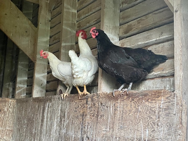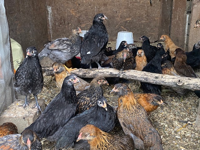 The chicks we got in April are about two months old now, they hop in and out of their pen at will. And they love being outside.