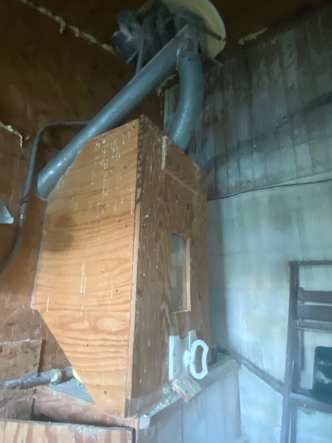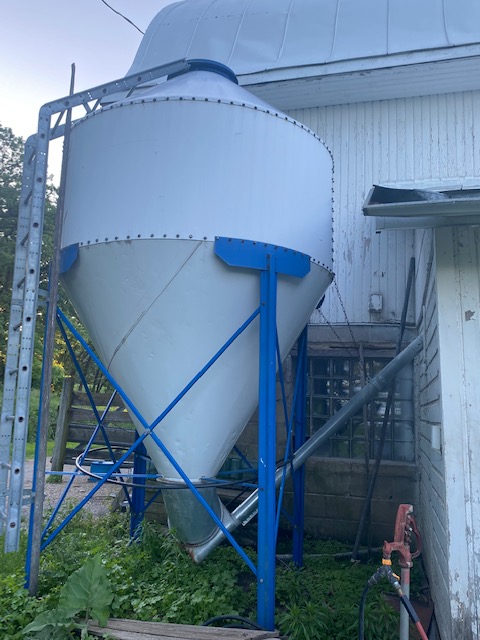 I ordered 100 bushels of cracked corn last week, it’s the corn I throw out for the chickens and the ducks. Last summer I took the bottom off this bulk bin and cleaned all the old, moldy corn out of it. It emptied completely and cleanly this time. I have corn stored at the elevator in what’s called “grain bank“. It’s just the volume of corn, it’s not my corn exactly, and when I need corn, they deducted it from my balance. A bushel of corn is 56 pounds, so 100 bushels is 5600 pounds. (Remember I’ve talked about test weights before; when sold, it’s all about the weight.) The co-op cracks the corn and delivers it and puts it in the bin and the chickens and ducks enjoy it. I ordered it Friday, and it was delivered about 6:30PM Monday night. A reminder it’s not only farmers that work late, but the support people too. We appreciate it. Here’s the bin and the box inside that I get the corn from.