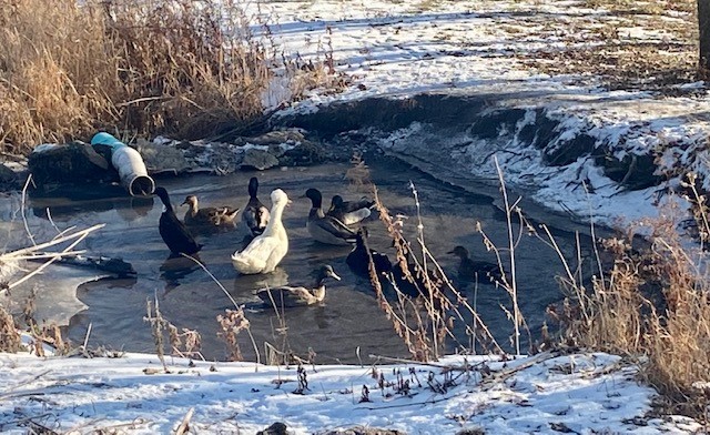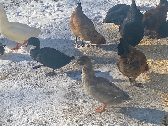 And some of the ducks are bathing in the water tank down by the barn. Nothing wrong with that except they spill a lot of water and it’s making an icy spot. Won’t be my problem in a few days.