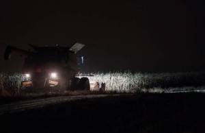 Corn was done last week. I knew the yield looked good. Which is pretty amazing considering again, it was planted late, it was cool, it rained, it had windstorms, and then it froze early. It averaged 167 bushels / acre. Above average for me. It doesn’t make any sense considering everything done wrong, but it is what it is. With the raccoons pulling stalks down and wasting the corn, deer knocking them down and eating the corn, and turkeys pulling up young plants, it’s a wonder any survives. Every night you’d see deer out there eating. And as I rode in the combine and he finished the last field, we chased 6 raccoons out of the last rows.