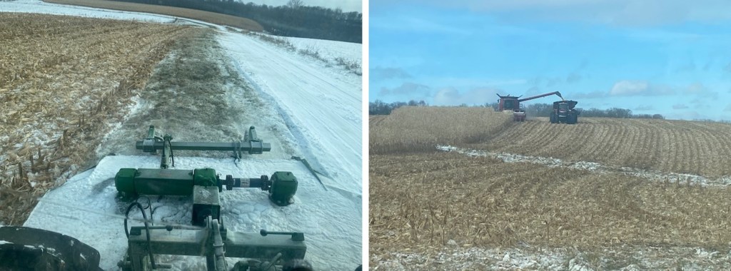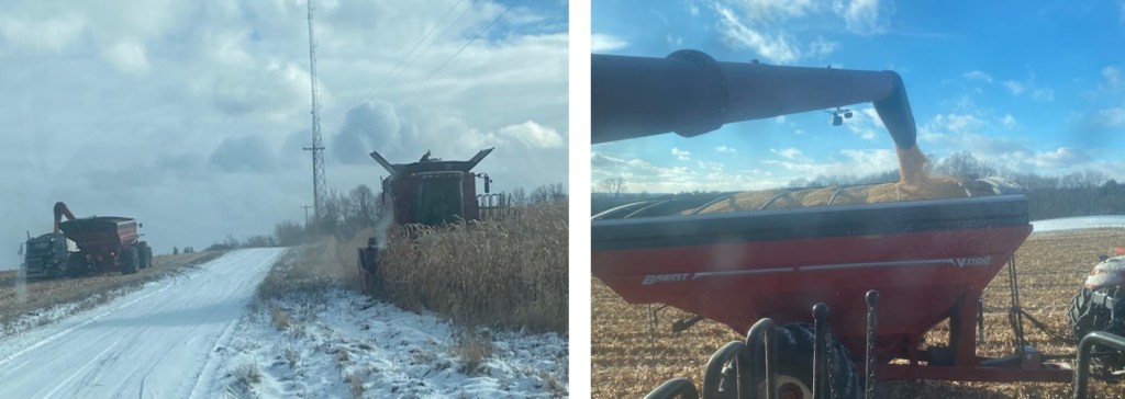 The corn kernels themselves are not sensitive to picking up moisture like soybeans or other crops are. But the snow on the leaves gets inside the combine harvester and makes everything wet and then things plug up and it just makes a mess. So we either need warmer weather to melt the snow off, or colder weather to reduce the moisture in the snow. I guess we opted for colder.