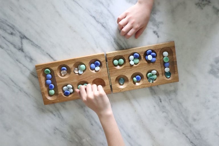 Eventually I didn’t need to let her win anymore and it was about that time that she came home from daycare wanting the game “Mancala”. It looked interesting so I got her a set and then lost every single game we ever played. It took me forever to even figure out the rules and I never did really master it. I think we will have it downstairs but it hasn’t been out of the box in years!