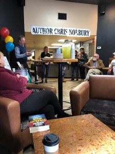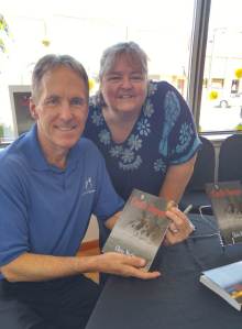 And I didn’t have my camera back in April when I met another baboon Linda at baboon Chris’ book signing at the lovely Fair Trade Books in Red Wing. But here’s a photo taken at another of Chris’ signings: