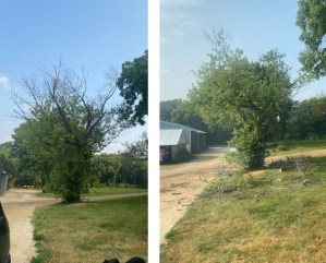 We had trees trimmed, and I got branches laying all over. Three maple trees that had a lot of dead wood in them. One tree I was worried about falling on the wellhouse, one I was worried about falling on some electric lines to the barn, and one tree in the front yard more dead than alive. It’s the swing tree so had to save that part of it. There are pictures of that tree from 50 years ago and the tree seems like it was the same size then.