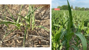 Weeds too; deep roots. I took some close-up photos of the corn leaves curling up compared with how it should look.