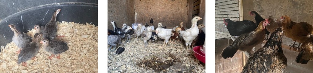 The baby chicks and guineas are doing well. Here’s a picture of the big chickens too.
