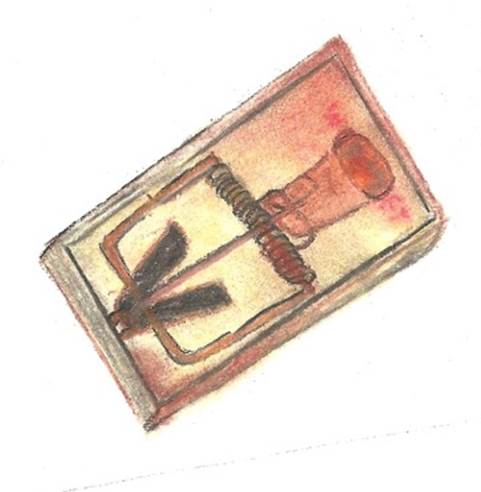 When Lou and I arrived home from Arizona February 2, it was abundantly clear that while we were away, the mice did play in three drawers of the kitchen. Immediately I cleared out the drawers, then washed everything in them. Lou set the traps. These mice were wily! It took 2 weeks to catch the first one in the knife drawer, a pink, sleek, healthy specimen which had apparently thrived in its makeshift home.