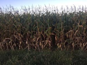 Three weeks ago, I noticed a little bit of yellow in a field and I thought there was some disease damage happening. Nope, just starting to turn, but that first hint of yellow always surprises me. Takes about 3 or 4 weeks to all turn and loose leaves. That happens fast, once they start to turn and then they still have to dry out. Often, it’s not until a killing frost that the stalks are dry enough to go. Not always, again, depends on the weather.